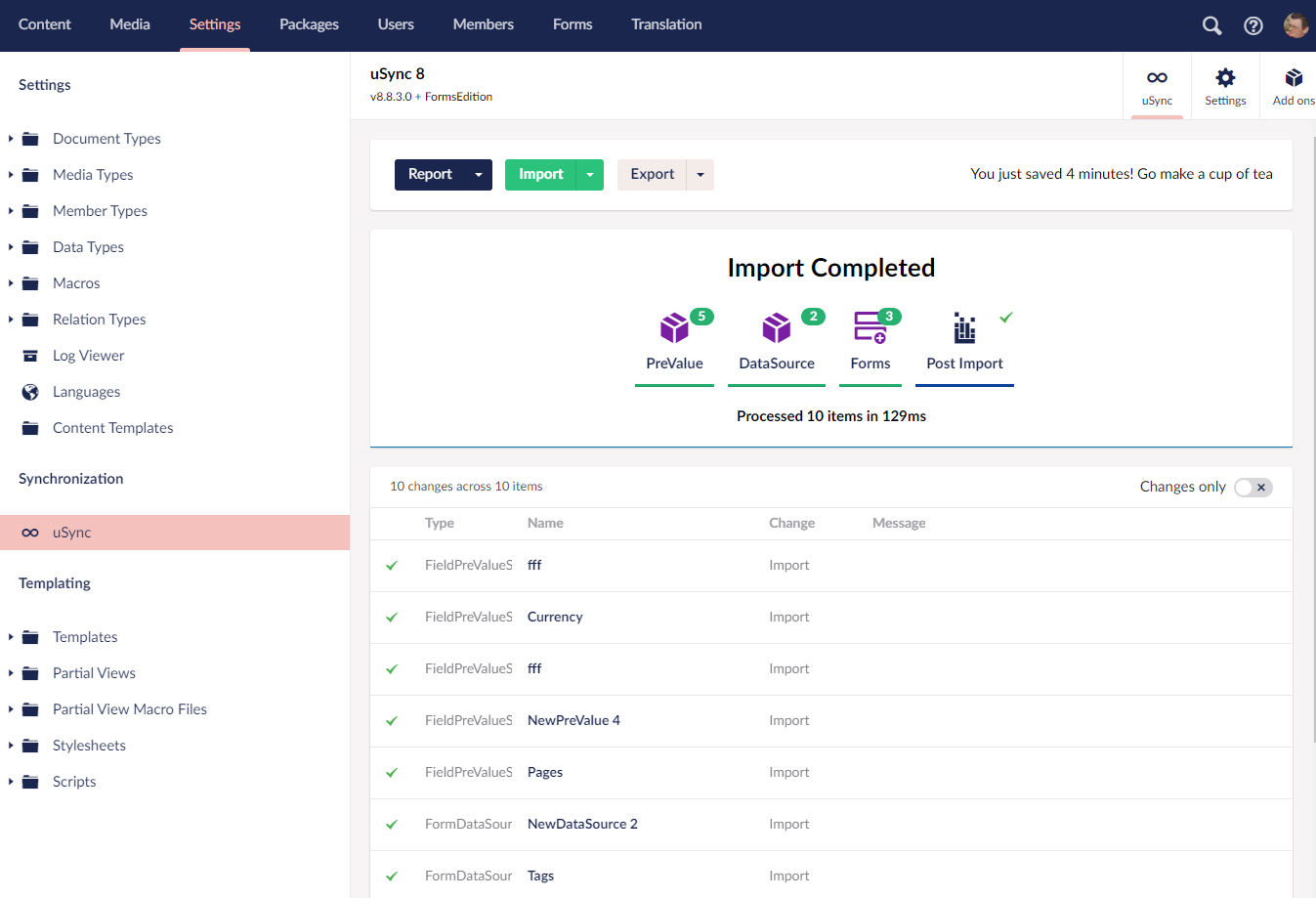 Sync all your Umbraco forms, data-sources and pre-value sources.