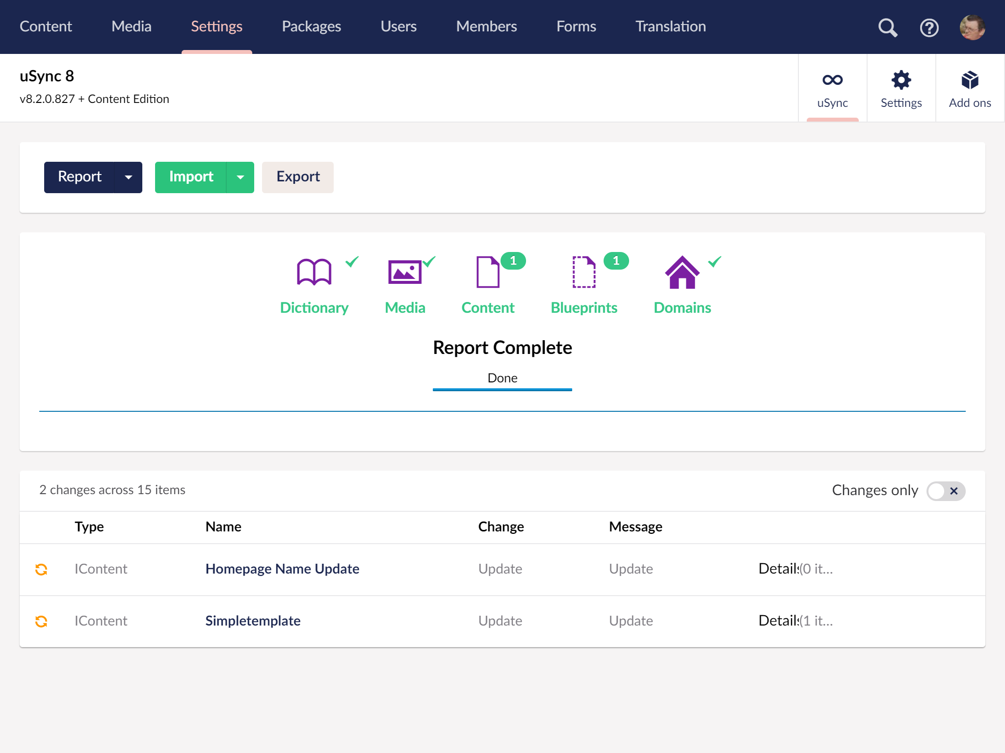 uSync.Complete adds an extra five packages to the uSync family. They add the ability to sync member and users, export settings as zip files, track settings changes and publish content between Umbraco installations.